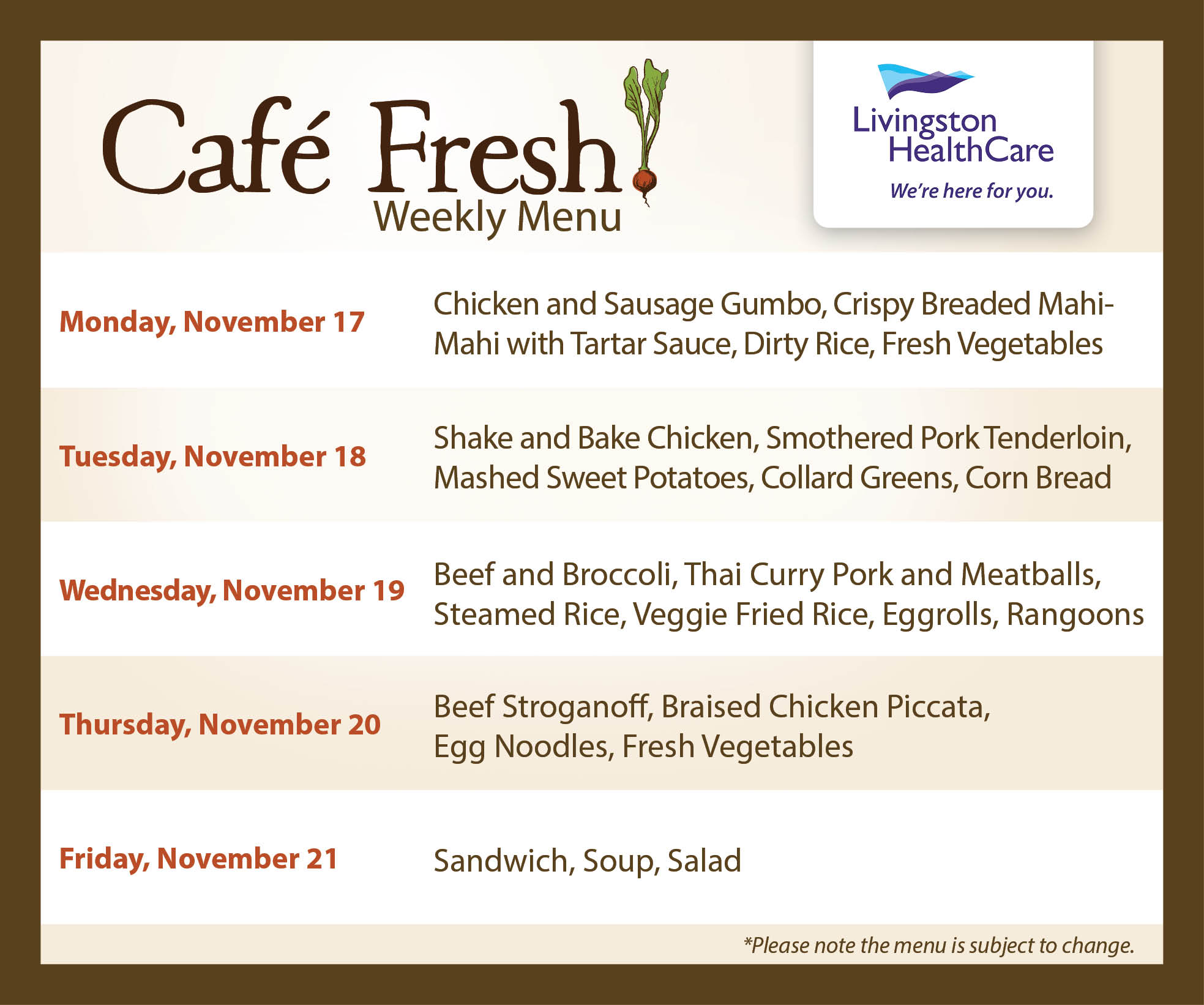 Café Fresh Menu